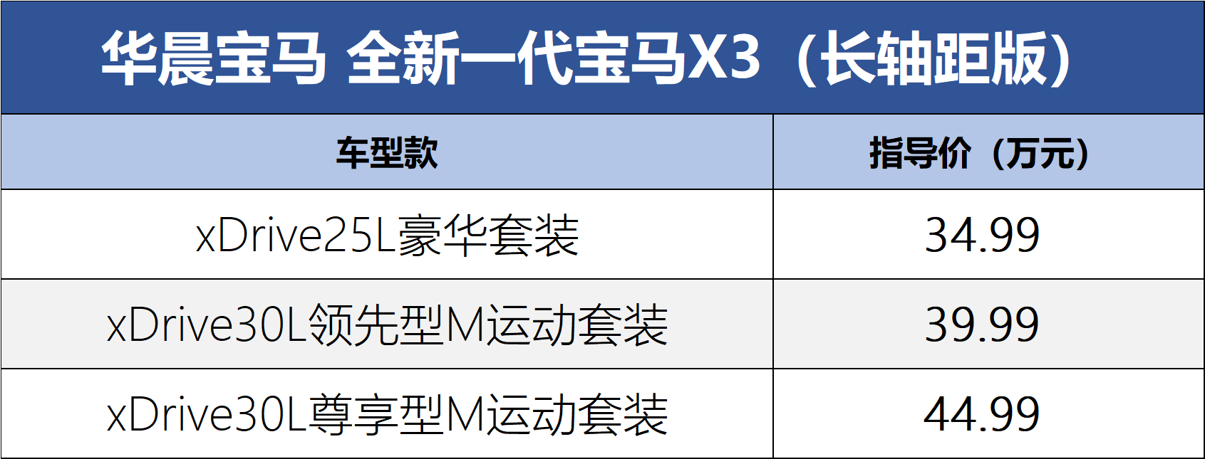 各位车友们,坤哥又来给大家带来重磅汽车资讯啦!最近,宝马 X3 家族可谓喜事连连,全新宝马 X3 长轴距版强势登陆中国市场,一出场就吸引了无数车迷的目光。这可是宝马 X3 首次对轴距进行加长,相比海外版本,轴距足足增加了 111 毫米,看来宝马这次是铁了心要满足咱们国内消费者对大空间的追求。新车不仅空间有惊喜,在动力、配置等方面也是诚意满满,全系搭载 2.0T 发动机,售价在 34.99 万元至 44.99 万元之间,还标配了 xDrive 智能全轮驱动系统、L2 级驾驶辅助系统等多达 35 项高科技配置,性价比相当高。下面,坤哥就带大家深入了解一下这款新车。